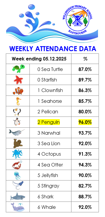 We are very proud of our good attendance at Willingdon Primary School and we always strive to reach our aspiring whole school targets set at 97%.